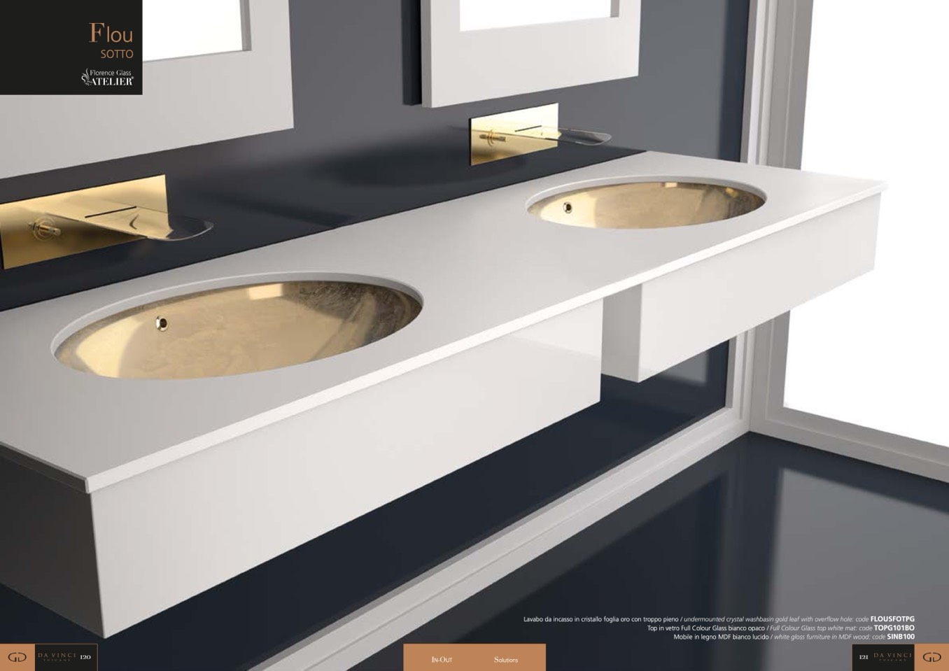 Lavabo da incasso in cristallo foglia oro con troppo pieno / undermounted crystal washbasin gold leaf with overflow hole: code FLOUSFOTPG