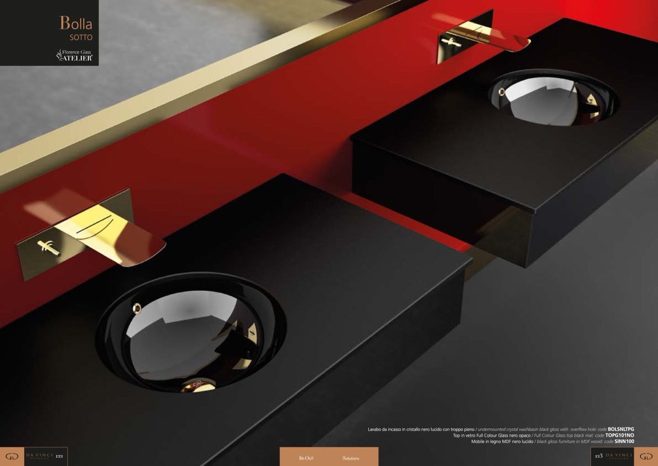 Lavabo da incasso in cristallo nero lucido con troppo pieno / undermounted crystal washbasin black gloss with overflow hole: code BOLSNLTPG
