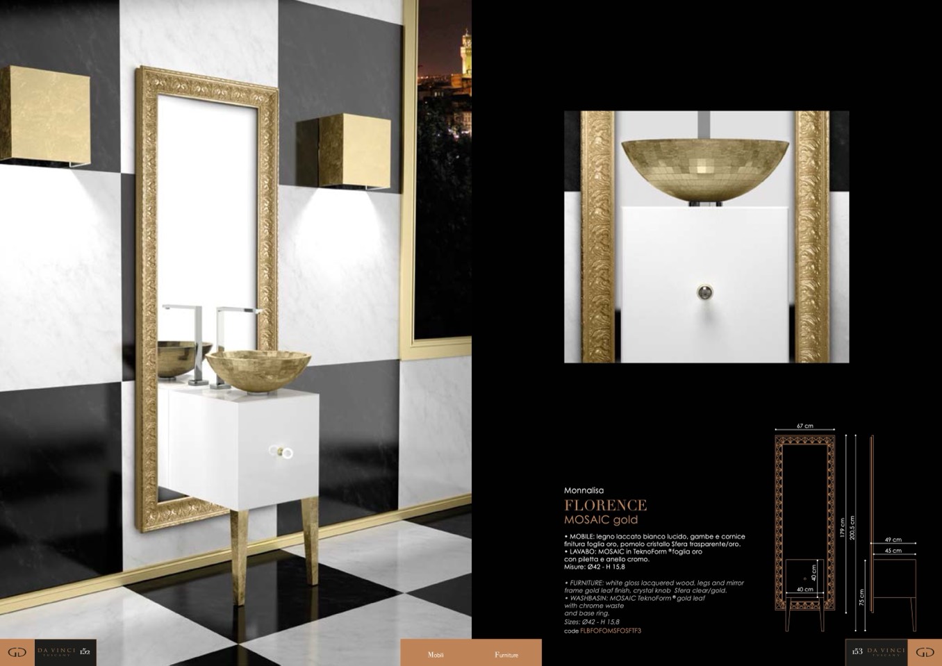 • FURNITURE: white gloss lacquered wood, legs and mirror