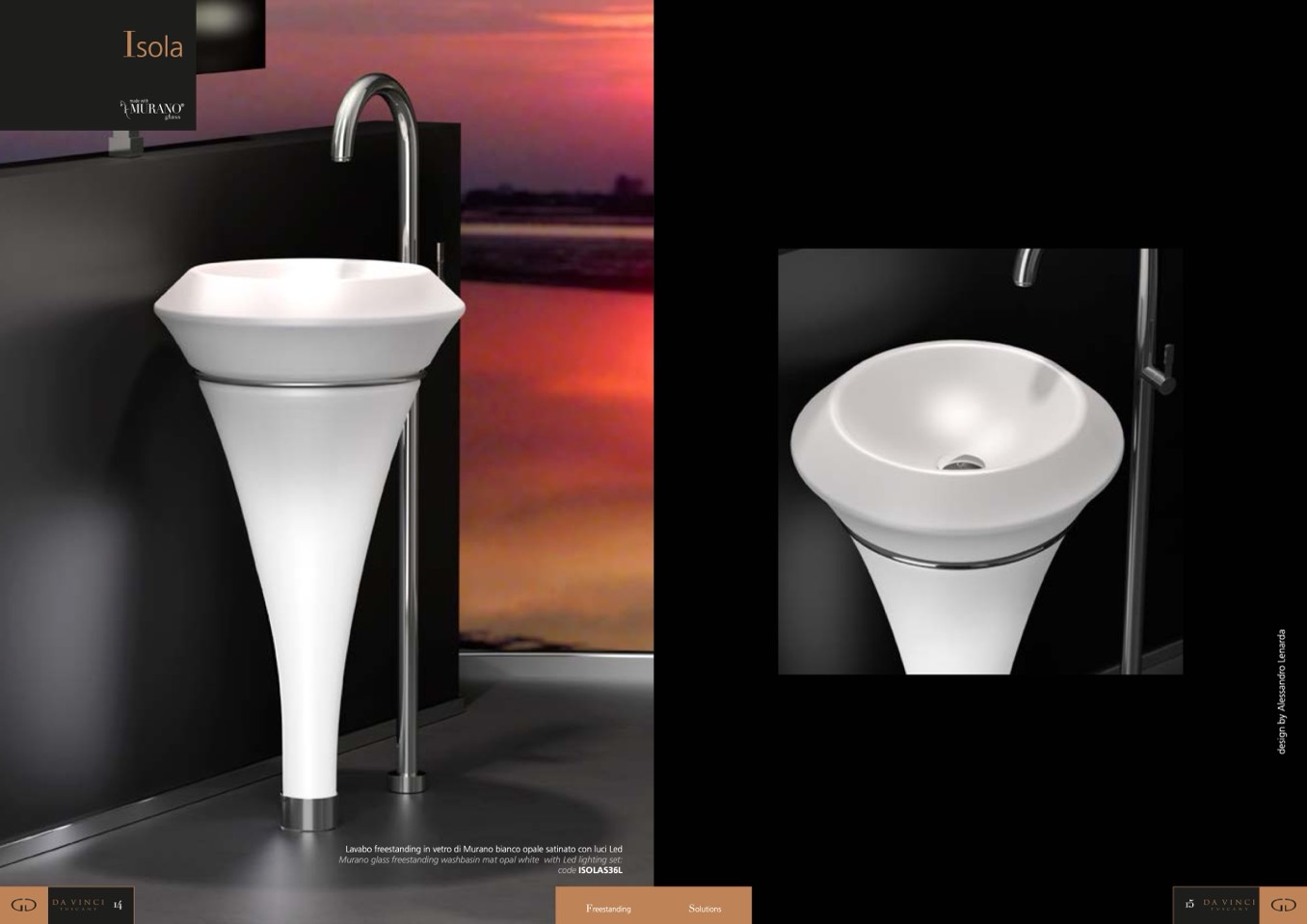 Lavabo freestanding in vetro di Murano bianco opale satinato con luci Led