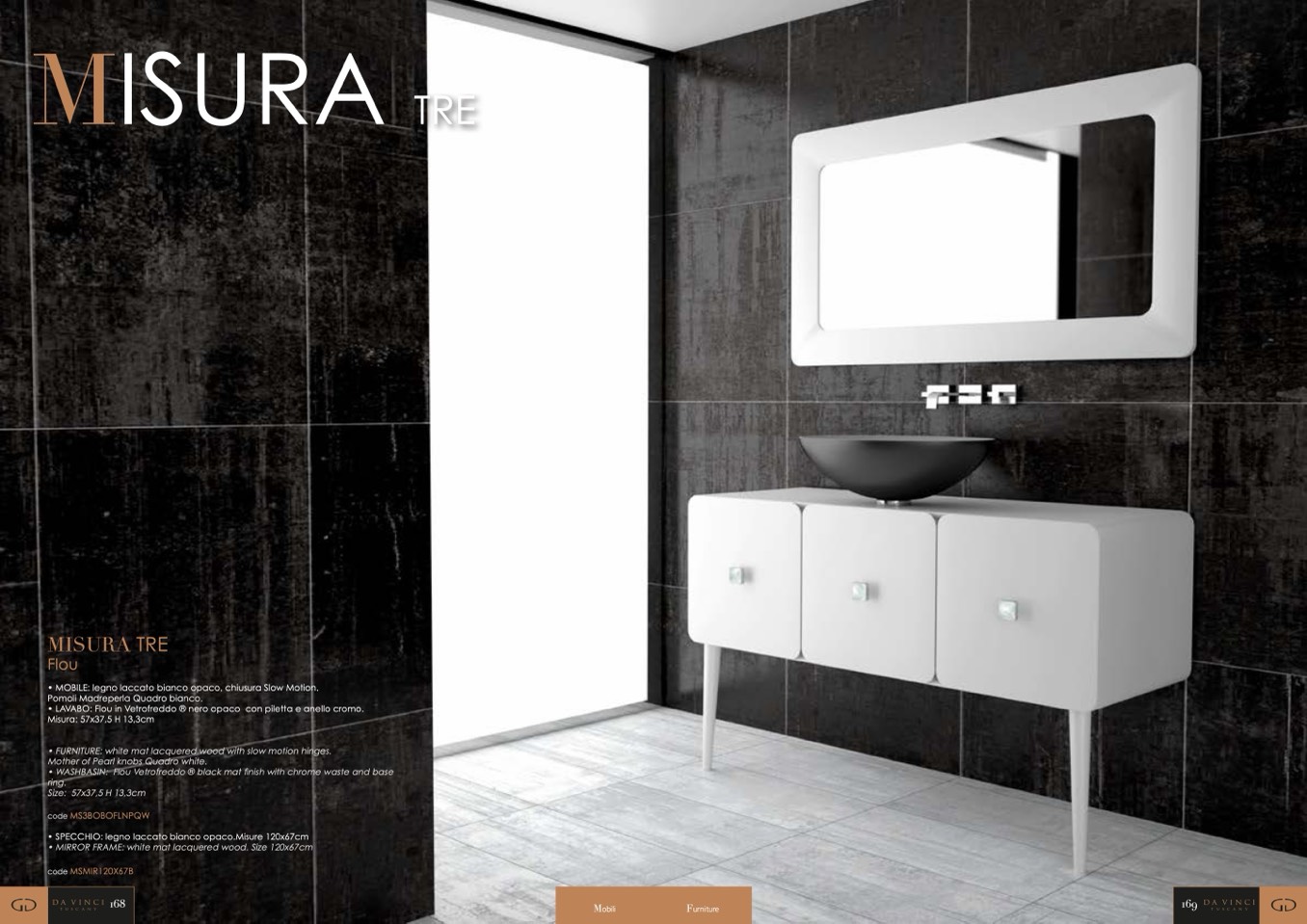 • WASHBASIN: Flou Vetrofreddo ® black mat finish with chrome waste and base