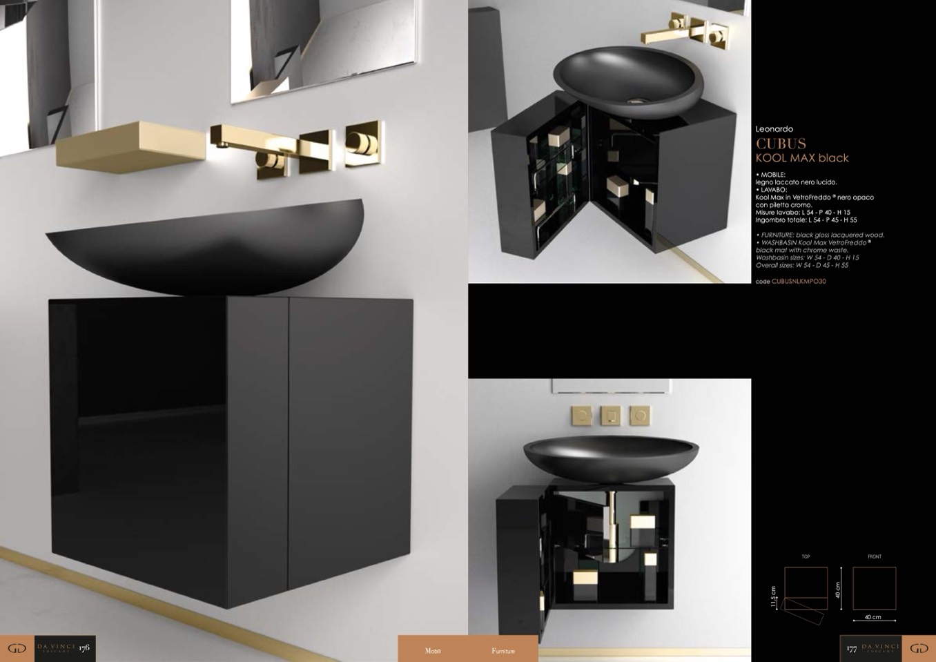 Washbasin sizes: W 54 - D 40 - H 15