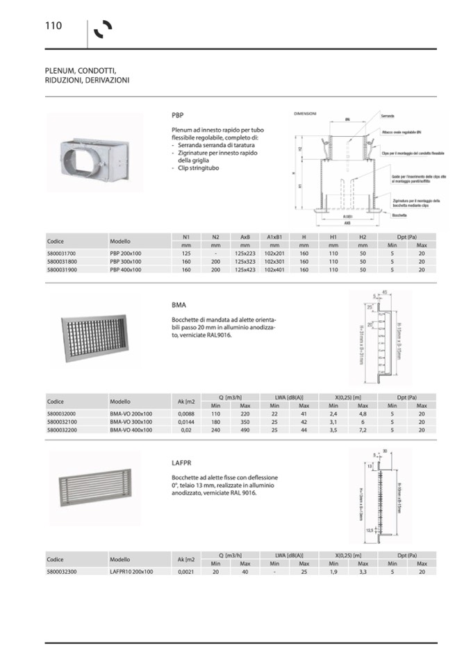 Bocchette ad alette fisse con deflessione