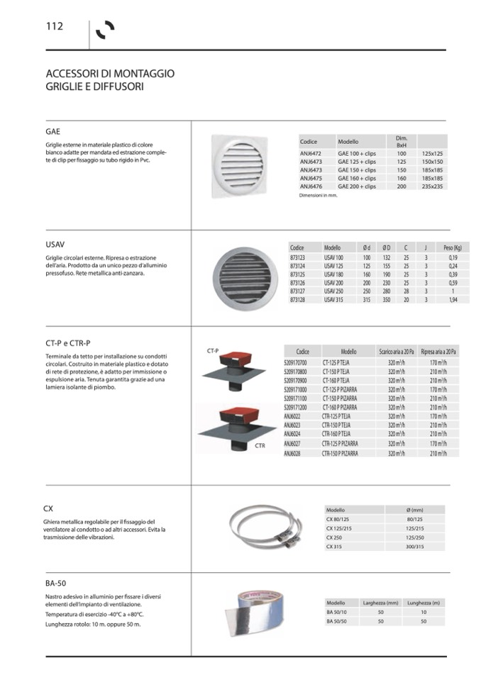 bianco adatte per mandata ed estrazione comple-