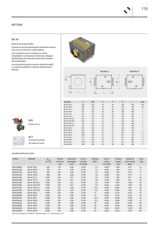 Valori con le seguenti condizioni: T ingresso acqua: 7oC, T uscita acqua: 12oC.