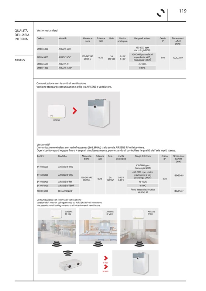 Versione standard: comunicazione a filo tra AIRSENS e ventilatore.