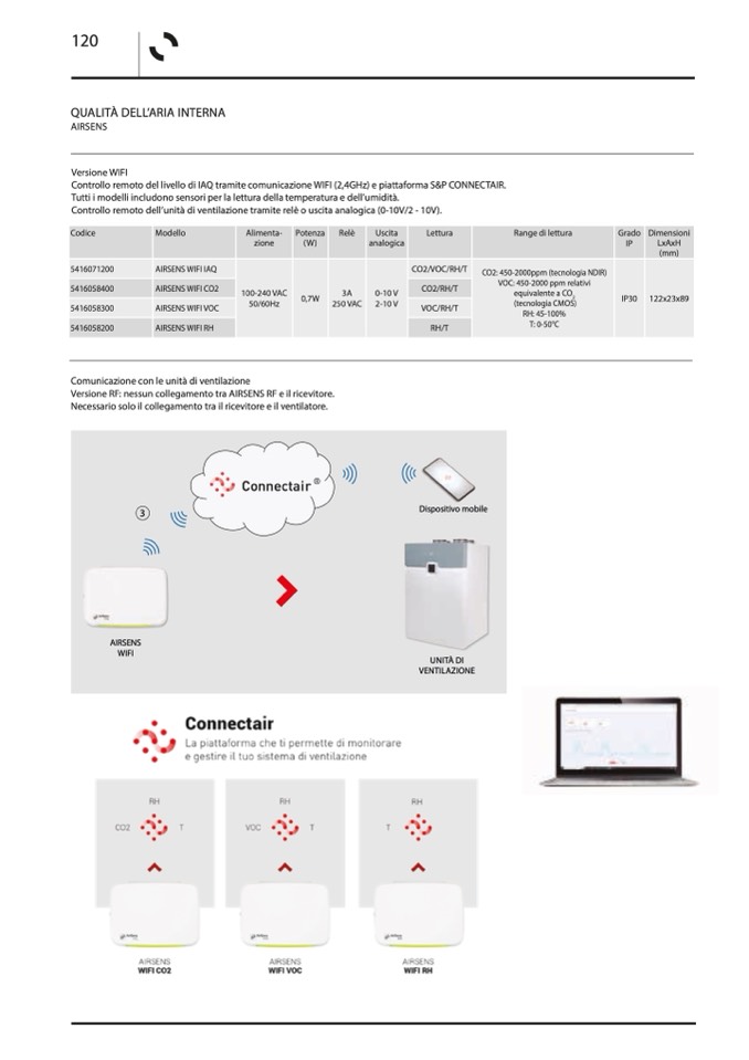 Controllo remoto del livello di IAQ tramite comunicazione WIFI (2,4GHz) e piattaforma S&P CONNECTAIR.