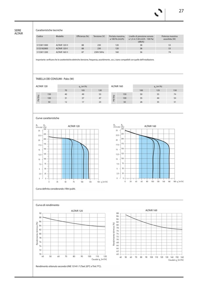 Rendimento ottenuto secondo UNE 13141-7 (Text 20°C e Tint 7°C).