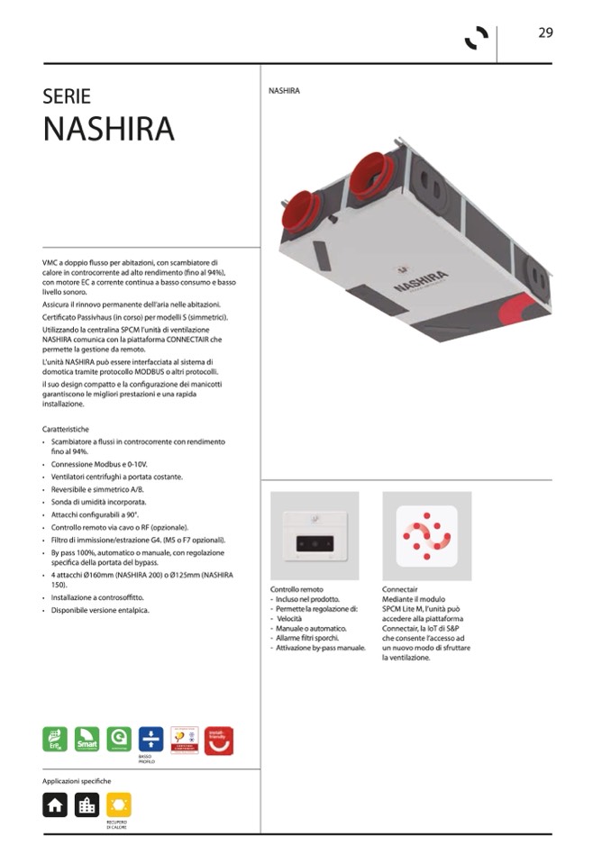 • 4 attacchi Ø160mm (NASHIRA 200) o Ø125mm (NASHIRA