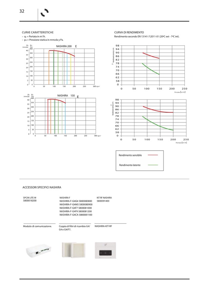 Rendimento secondo EN 13141-7:2011-01 (20oC ext - 7oC int).