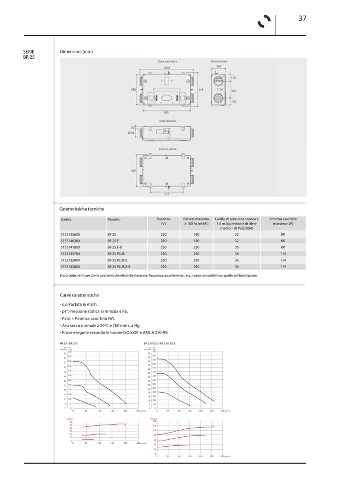- Prove eseguite secondo le norme ISO 5801 e AMCA 210-99.