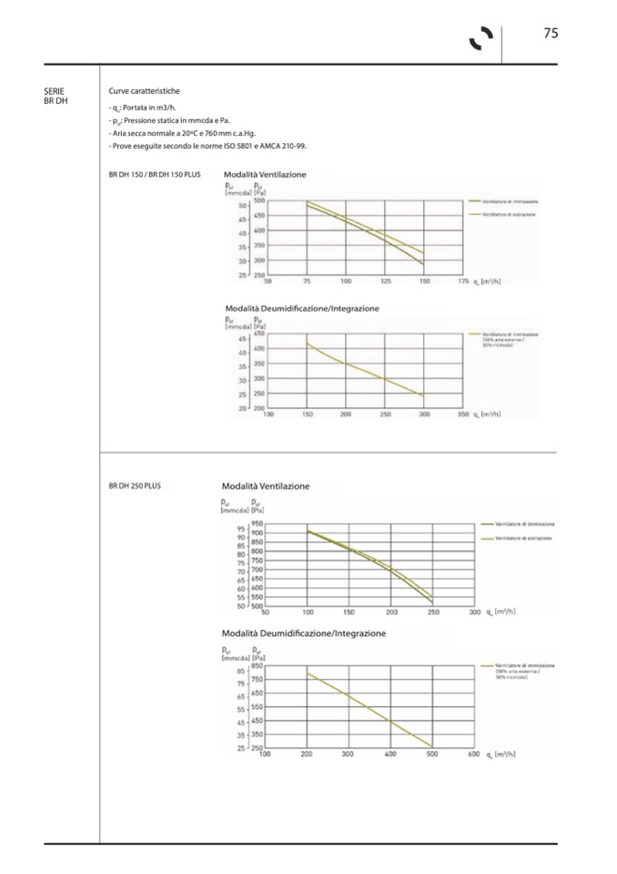 - Prove eseguite secondo le norme ISO 5801 e AMCA 210-99.