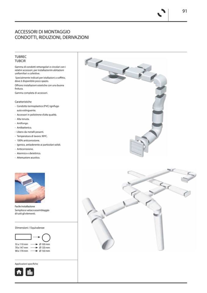 Gamma di condotti rettangolari e circolari con i