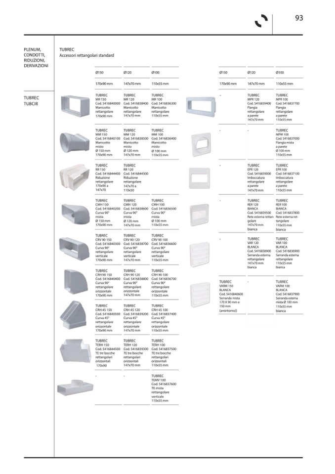 Accessori rettangolari standard