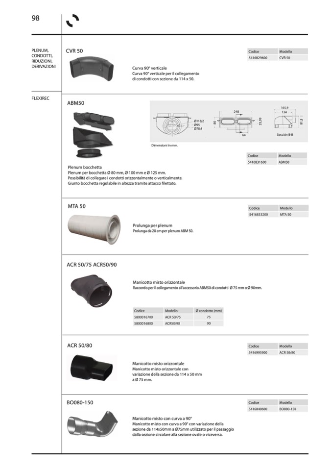 di condotti con sezione da 114 x 50.