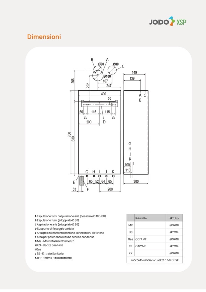 A Espulsione fumi / aspirazione aria (coassiale Ø 100/60)