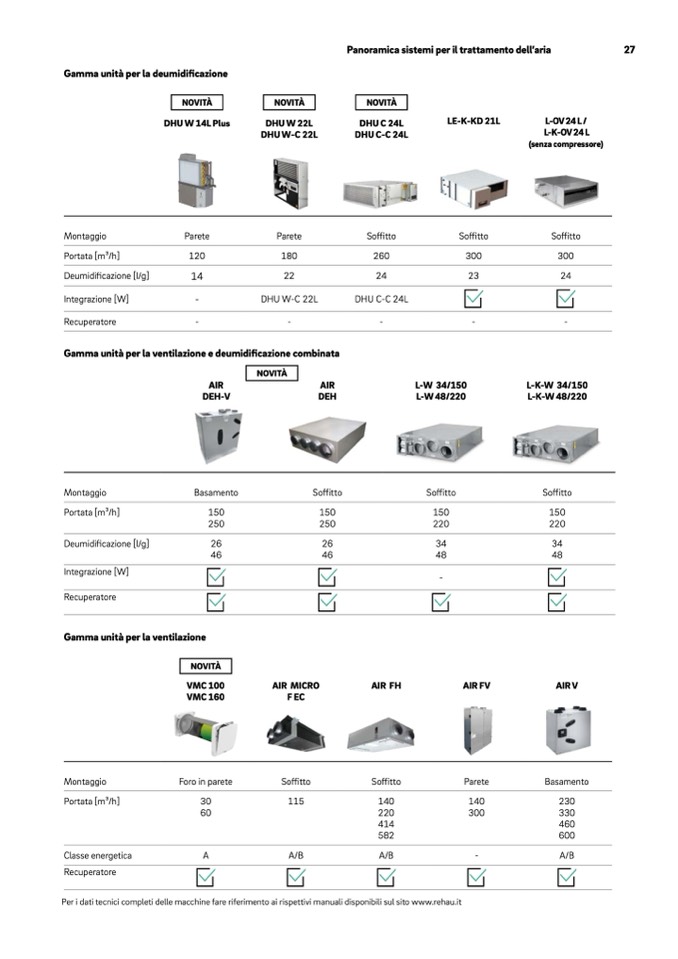 Per i dati tecnici completi delle macchine fare riferimento ai rispettivi manuali disponibili sul sito www.rehau.it
