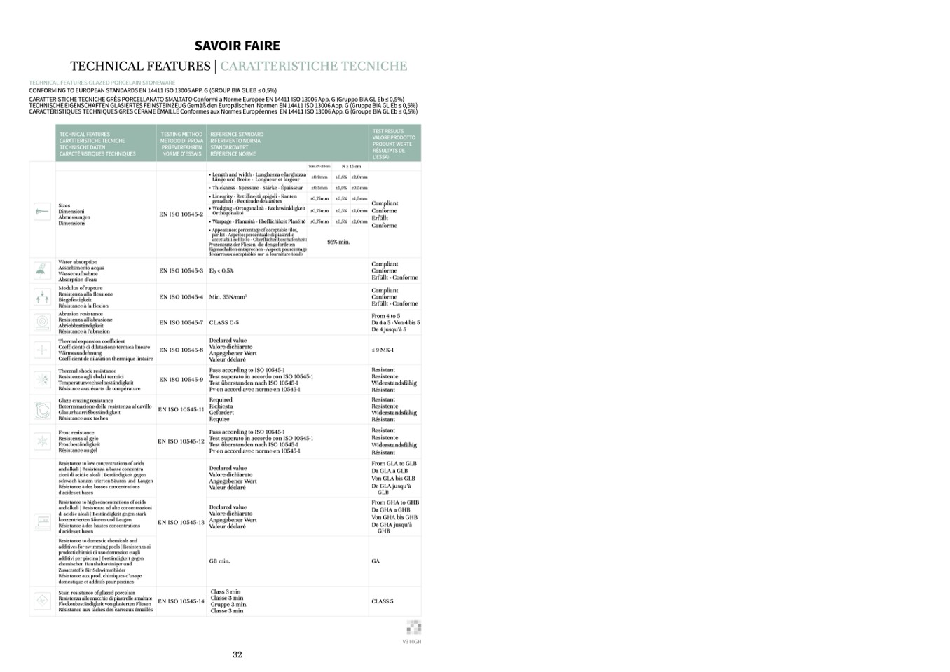 CONFORMING TO EUROPEAN STANDARDS EN 14411 ISO 13006 APP. G (GROUP BIA GL EB ≤ 0,5%)
