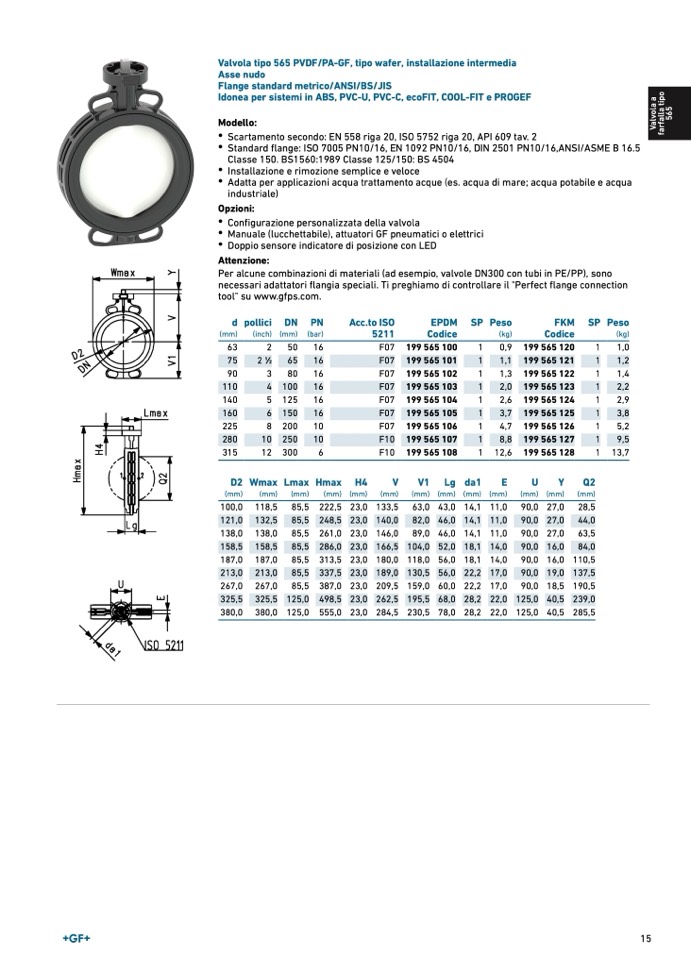 Valvola tipo 565 PVDF/PA-GF, tipo wafer, installazione intermedi