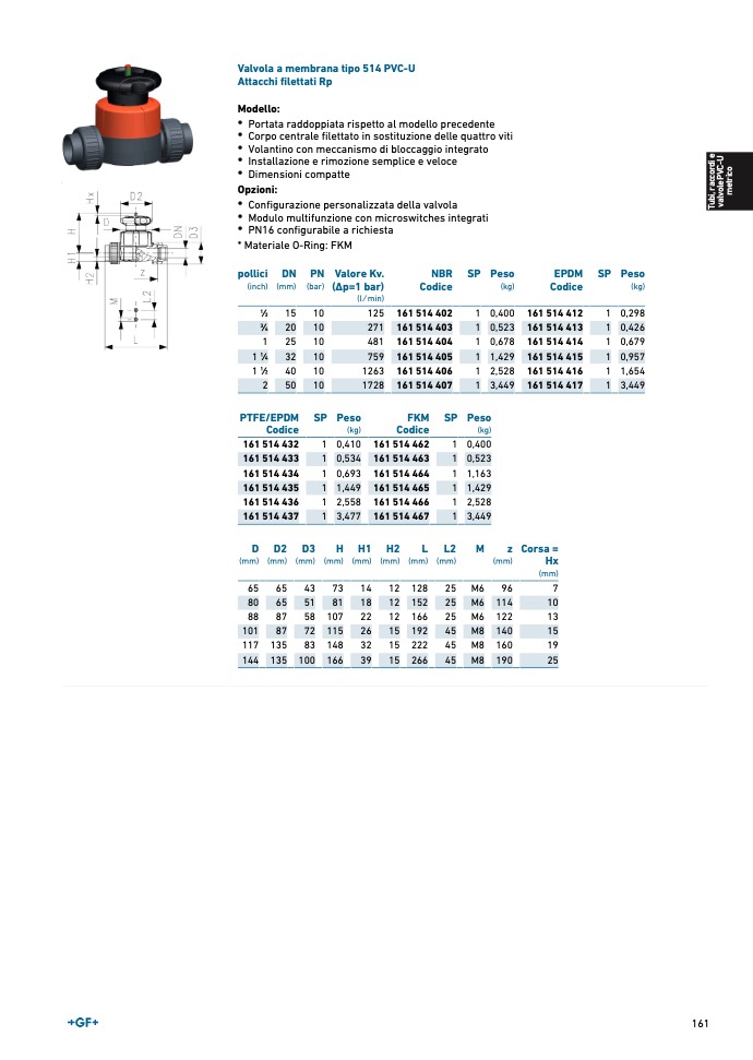 Valvola a membrana tipo 514 PVC-
