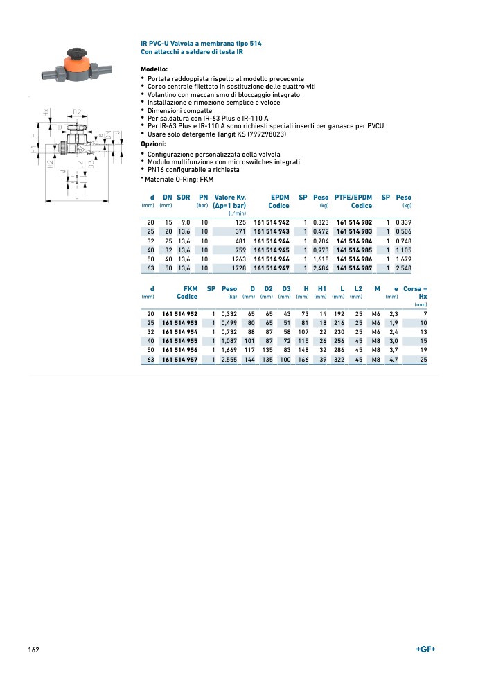 IR PVC-U Valvola a membrana tipo 514