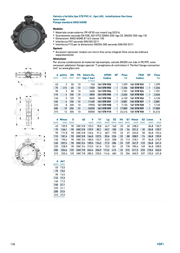 Valvola a farfalla tipo 578 PVC-U , tipo LUG, installazione fine linea