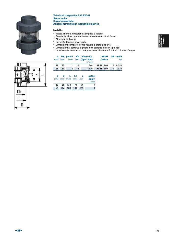 Valvola di ritegno tipo 561 PVC-U