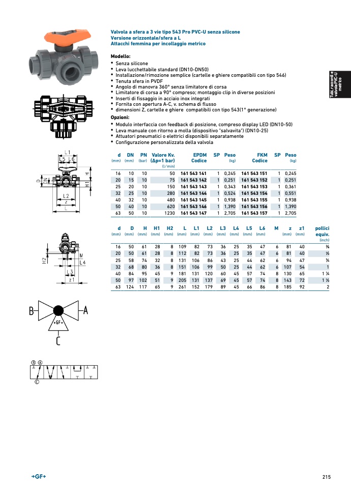 Valvola a sfera a 3 vie tipo 543 Pro PVC-U senza silicon
