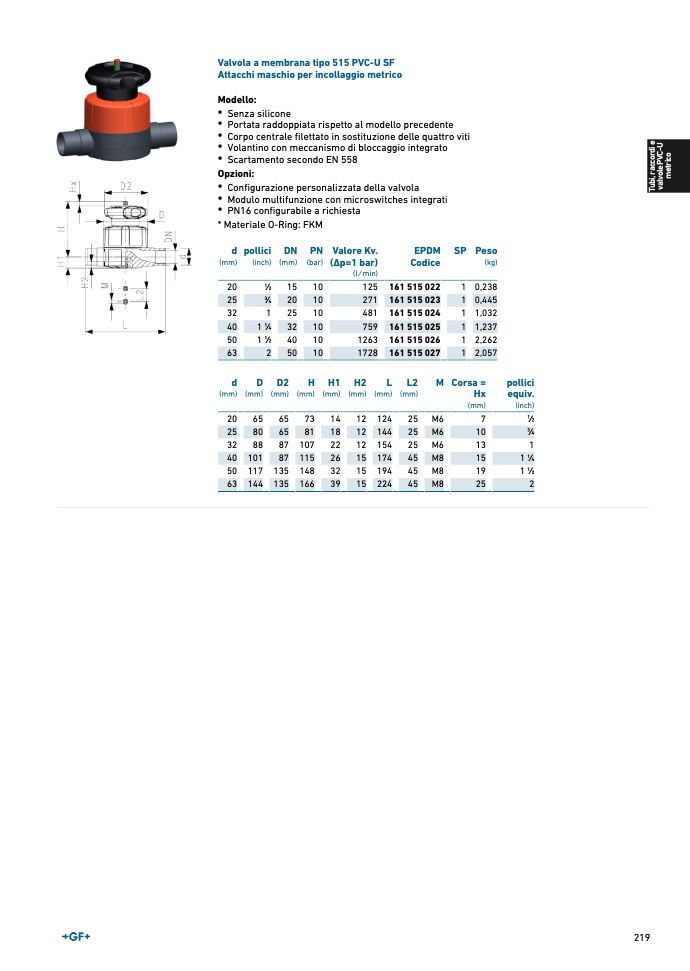 Valvola a membrana tipo 515 PVC-U S