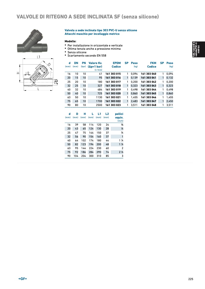 Valvola a sede inclinata tipo 303 PVC-U senza silicon