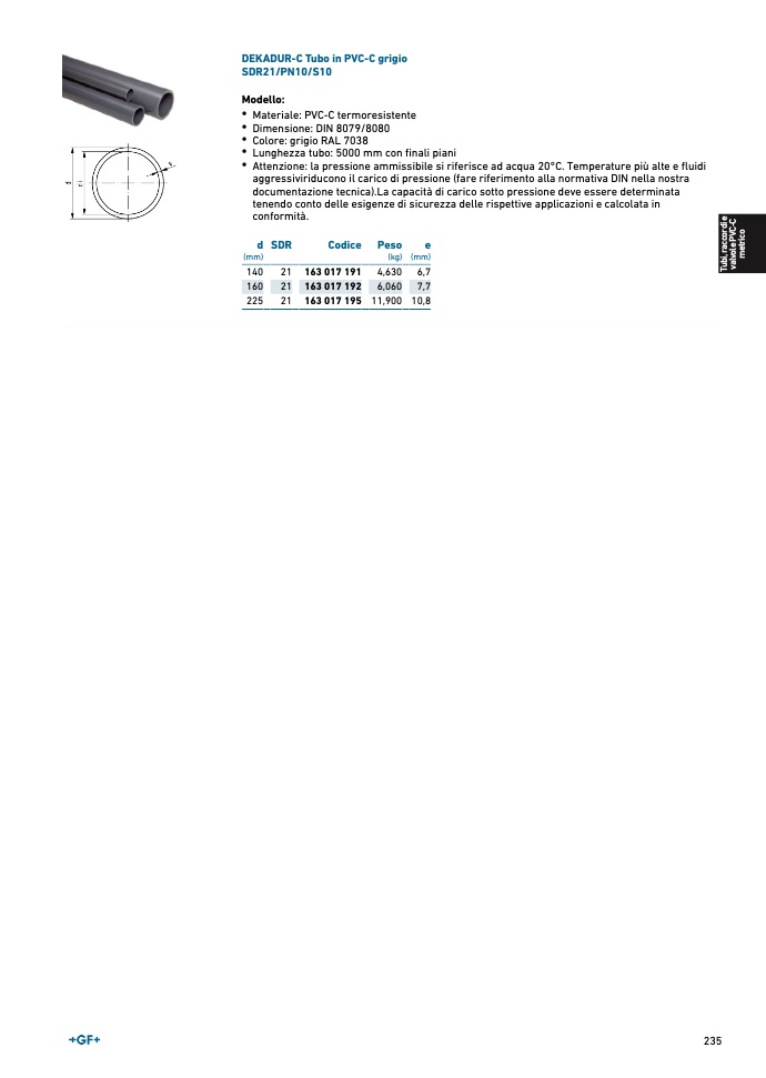 DEKADUR-C Tubo in PVC-C grigi