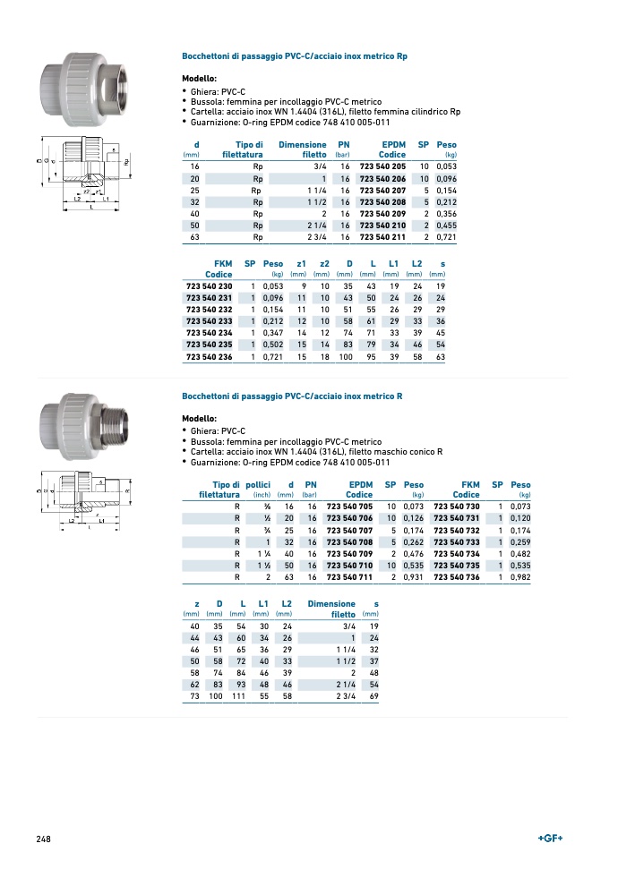 • Cartella: acciaio inox WN 1.4404 (316L), filetto maschio conico R