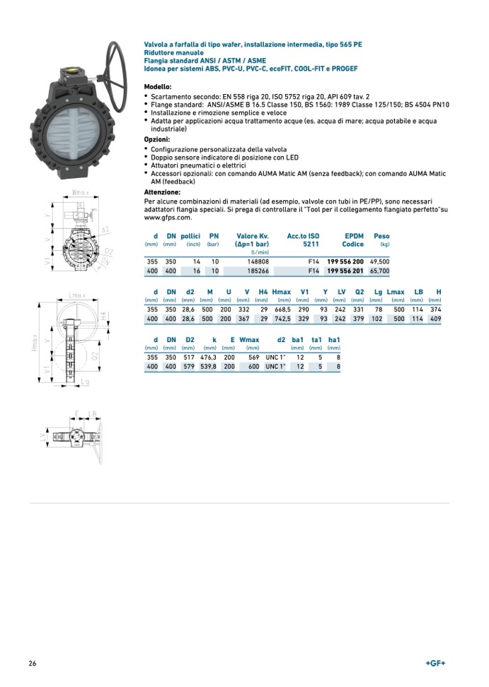 Valvola a farfalla di tipo wafer, installazione intermedia, tipo 565 P