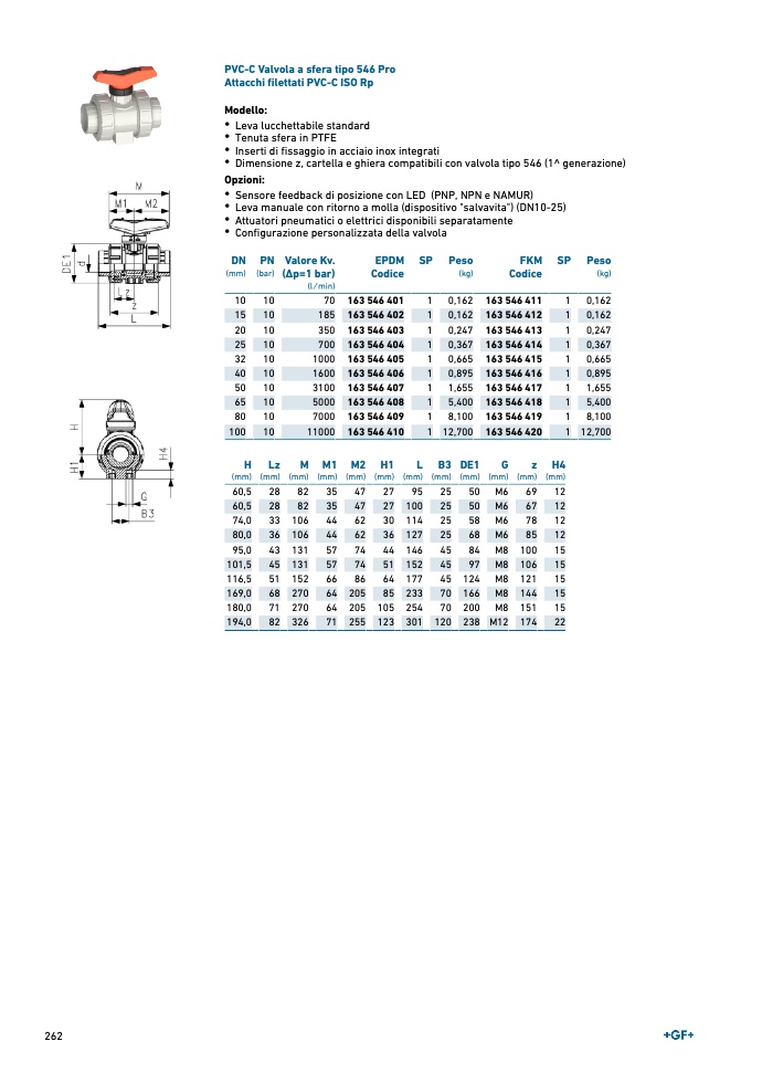 PVC-C Valvola a sfera tipo 546 Pr