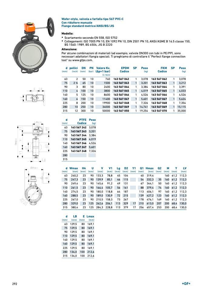 Wafer-style, valvola a farfalla tipo 567 PVC-C