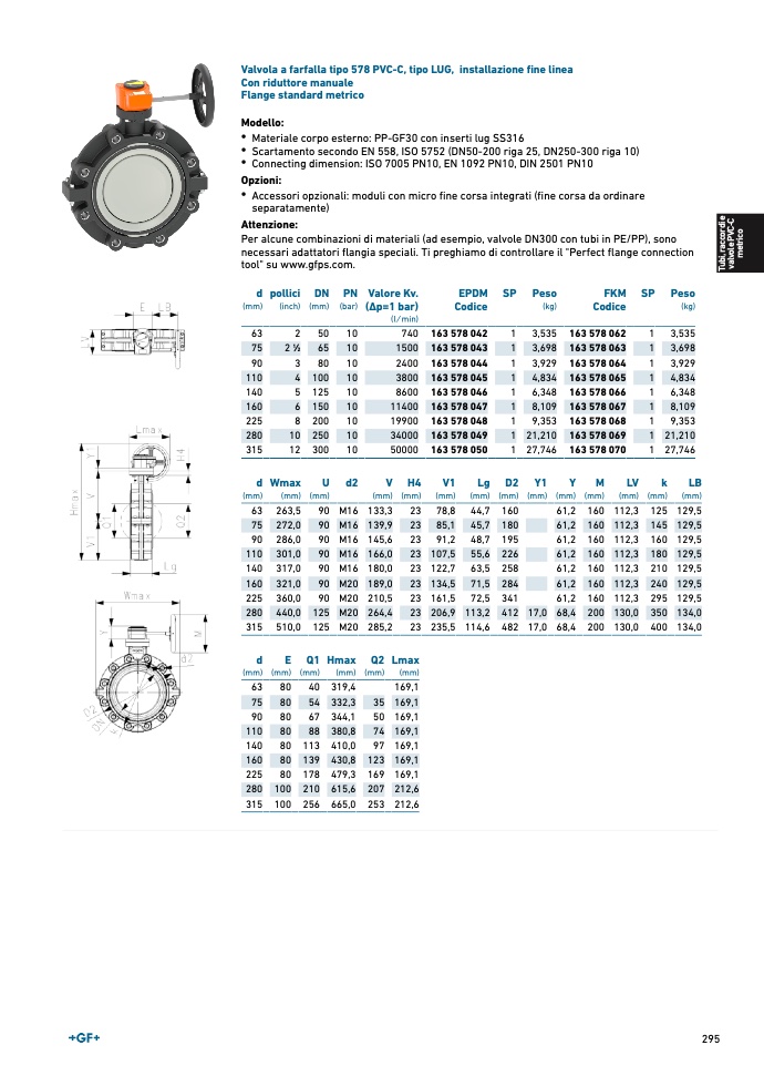 Valvola a farfalla tipo 578 PVC-C, tipo LUG, installazione fine line