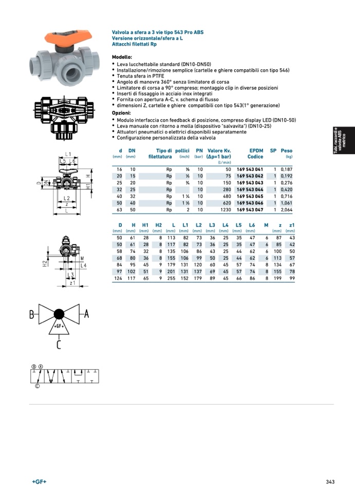 Valvola a sfera a 3 vie tipo 543 Pro AB