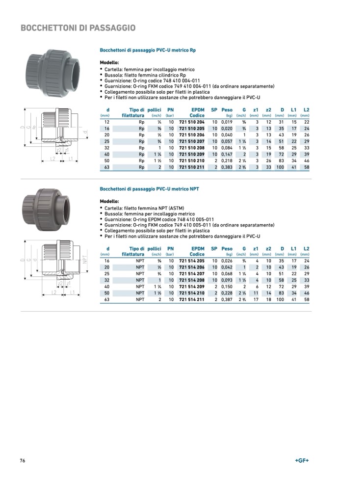 Bocchettoni di passaggio PVC-U metrico NPT