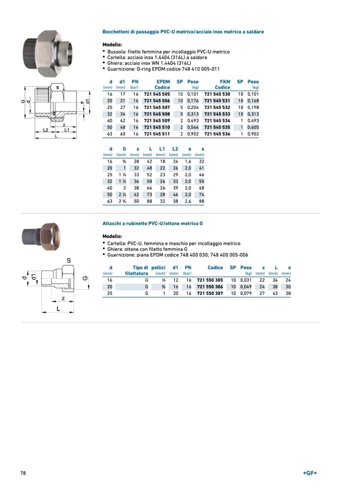 Bocchettoni di passaggio PVC-U metrico/acciaio inox metrico a saldar