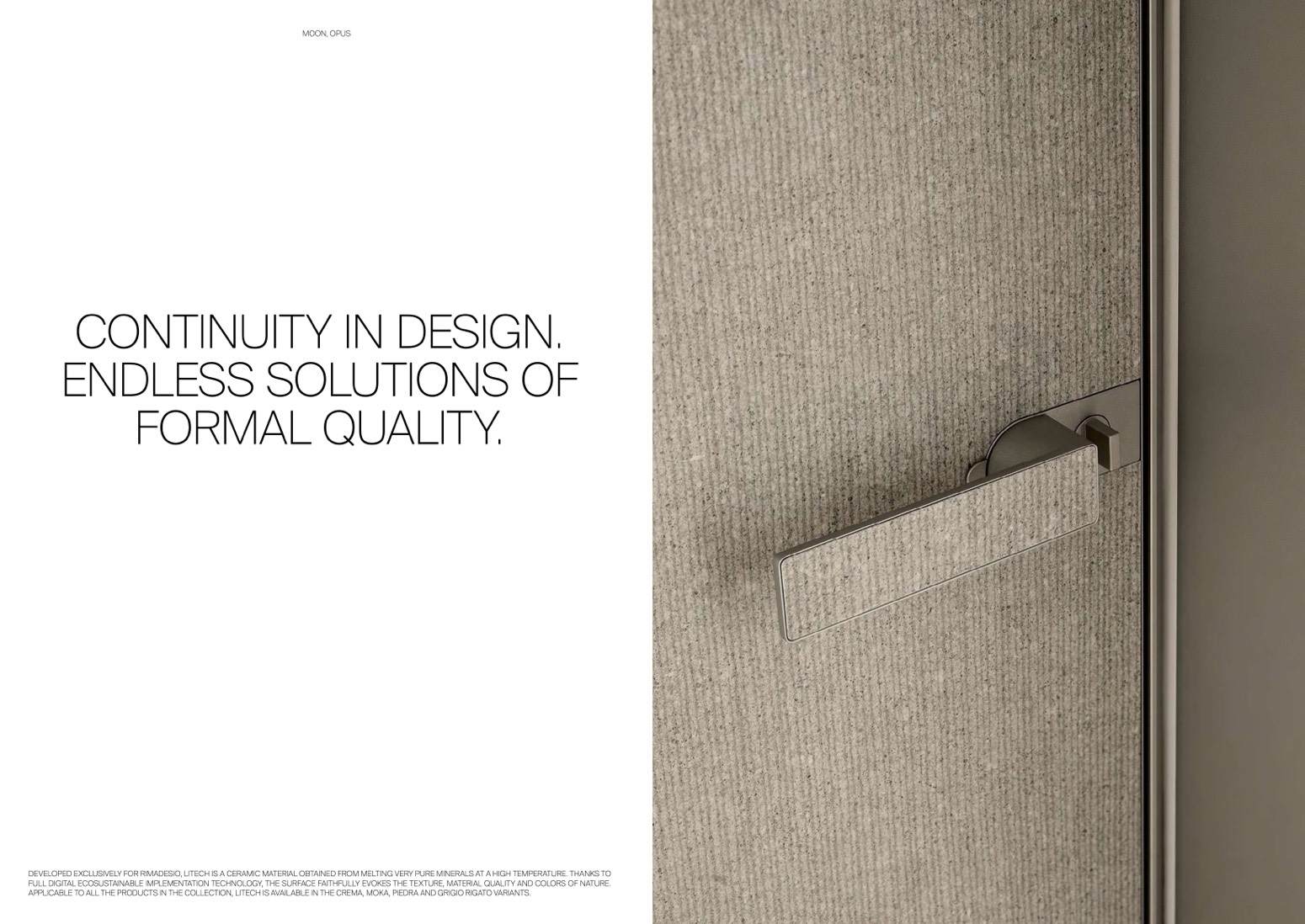 DEVELOPED EXCLUSIVELY FOR RIMADESIO, LITECH IS A CERAMIC MATERIAL OBTAINED FROM MELTING VERY PURE MINERALS AT A HIGH TEMPERATURE. THANKS TO