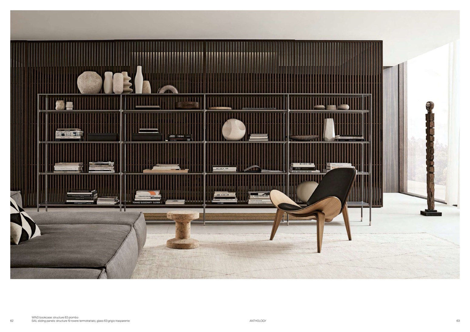 SAIL sliding panels: structure 19 rovere termotrattato, glass 63 grigio trasparente