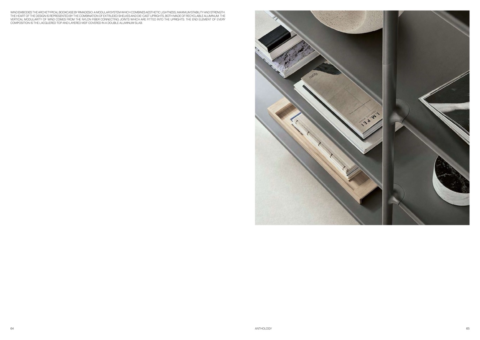 WIND EMBODIES THE ARCHETYPICAL BOOKCASE BY RIMADESIO: A MODULAR SYSTEM WHICH COMBINES AESTHETIC LIGHTNESS, MAXIMUM STABILITY AND STRENGTH.