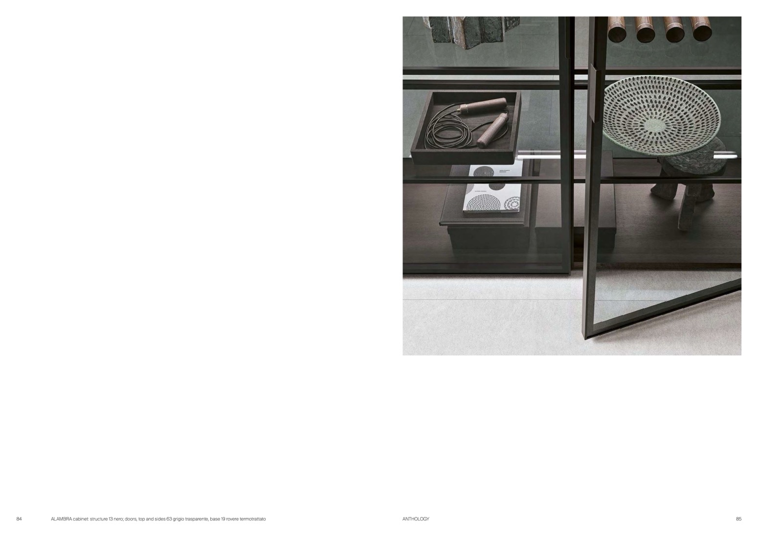 ALAMBRA cabinet: structure 13 nero; doors, top and sides 63 grigio trasparente, base 19 rovere termotrattato
