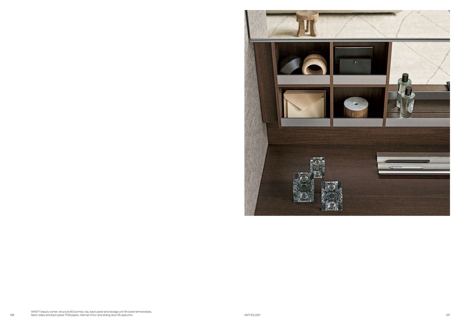 VANITY beauty corner: structure 83 piombo; top, back panel and storage unit 19 rovere termotrattato,