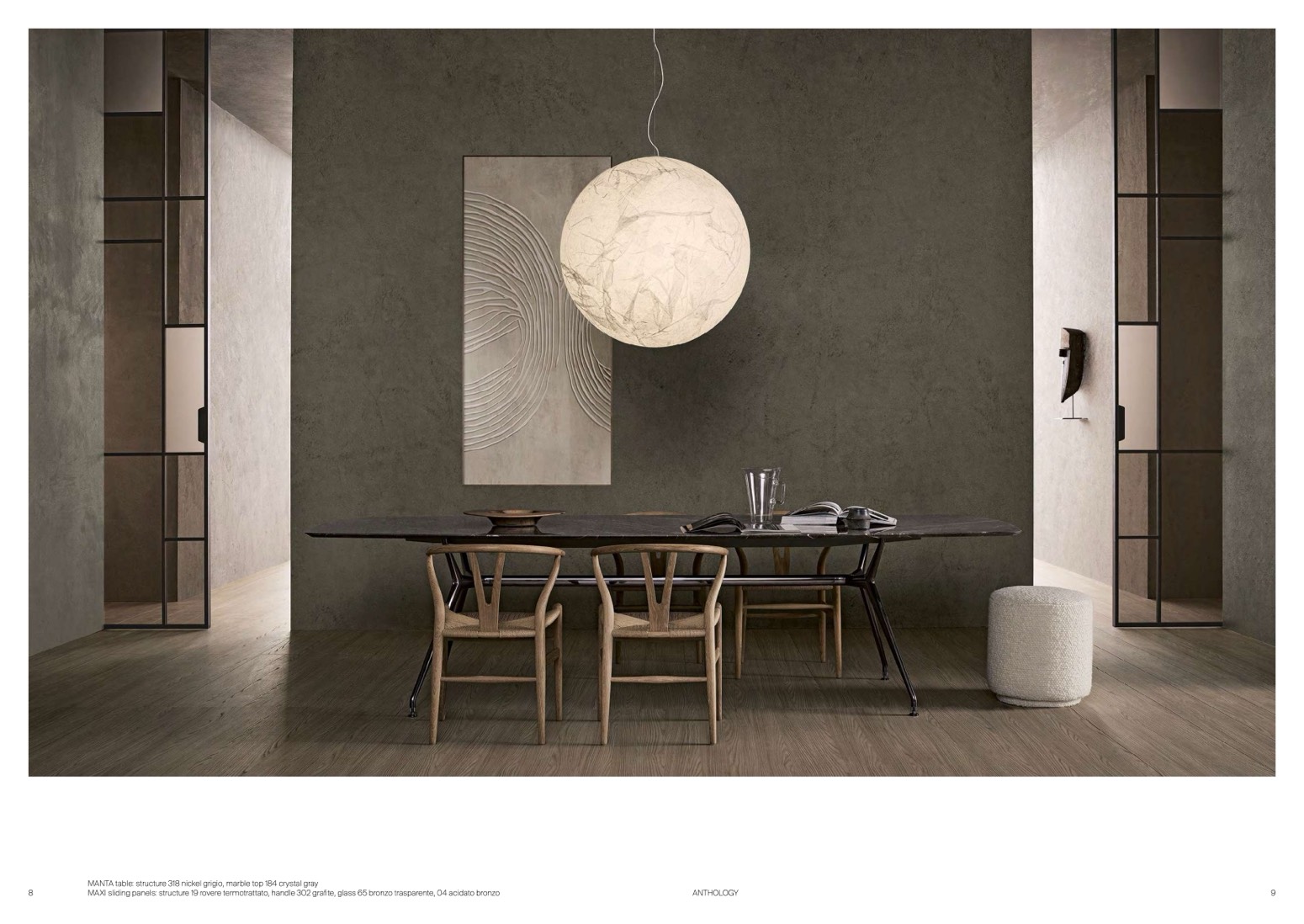 MAXI sliding panels: structure 19 rovere termotrattato, handle 302 grafite, glass 65 bronzo trasparente, 04 acidato bronzo