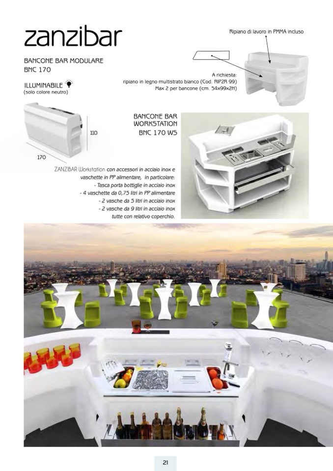 ZANZIBAR Workstation con accessori in acciaio inox e