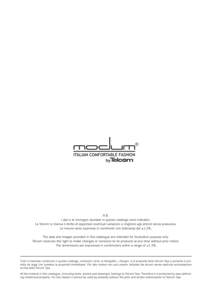 All the material in this catalogue, (including texts, photos and drawings), belongs to Telcom Spa. Therefore it is protected by laws defend-