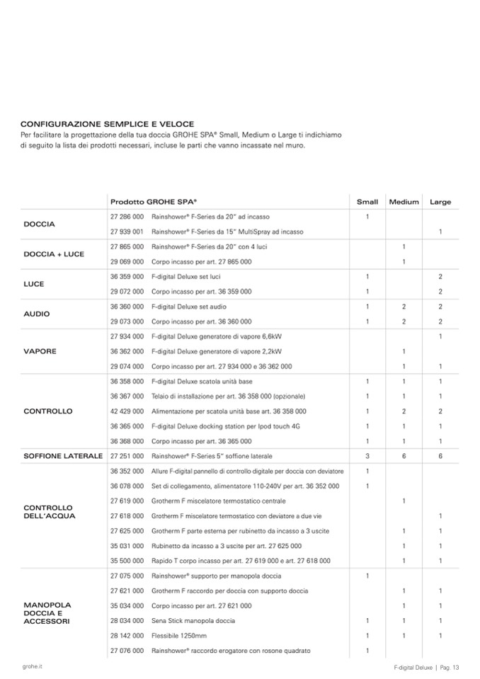 Per facilitare la progettazione della tua doccia GROHE SPA® Small, Medium o Large ti indichiamo