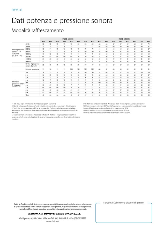 Dati riferiti alle condizioni standard: Aria-acqua - Solo freddo; ingresso/uscita evaporatore =