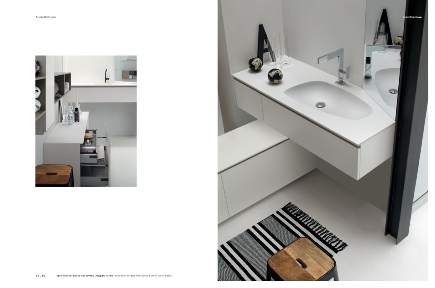 Top in teknorit opaco con lavabo integrato Ginko . Matt teknorit top with Ginko built-in wash basin